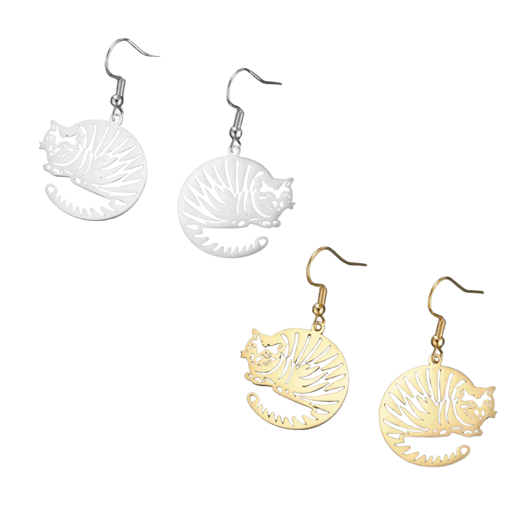 Embrace your inner cat lover with these quirky Cat Loaf Tiger Stripe Stainless Steel Earrings. Made with durable stainless steel, these earrings will never tarnish and are perfect for everyday wear. Show off your unique style with these tiger striped feline-inspired accessories!